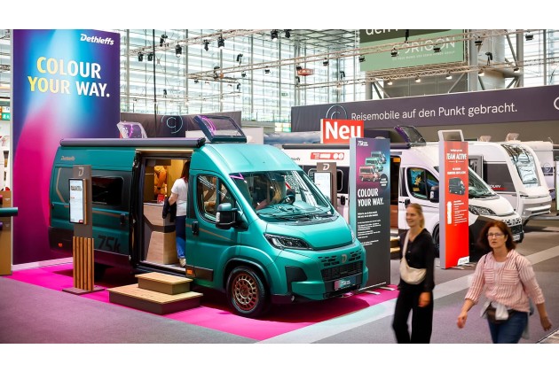 Serienmäßig inklusive: Dieselheizung, Rückfahrkamera und Alufelgen - Komfort ‚to go‘ ab 67.999 Euro. Ergänzend zeigt Dethleffs den Globetrail 75k Iconic Edition, ein Sondermodell zur Feier von 75.000 gebauten Camper Vans. Mit exklusivem Mattlack, 18-Zoll-Alufelgen im Bronzeton, Design-Details und Top-Ausstattung - darunter adaptiver Tempomat, Klimaautomatik, Navigation und stilvolle Rahmenfenster - setzt er auch innen Maßstäbe. Preislich startet der 540 DR bei rund 69.321 Euro.