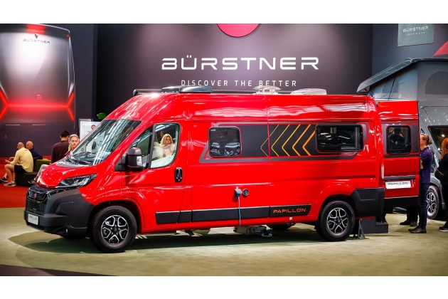 Mit dem Papillon bringt Bürstner einen designorientierten Campervan auf Citroën-Jumper-Basis an den Start - samt serienmäßigem, elektrisch bedienbarem Aufstelldach. Ein großes Panorama-Dachfenster sorgt für viel Tageslicht, während der moderne Küchenblock Funktionalität mit Stil kombiniert. Der 120-PS-Diesel wird ergänzt durch eine Lithiumbatterie und ein Solarpaket für autarkes Reisen.