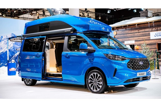 Mit dem neuen Nugget Hochdach präsentiert Ford eine Version mit festem Aufbau für ganzjährigen Einsatz. Das isolierte Hochdach schafft durchgehend Stehhöhe und bietet ein 130 x 200 cm großes Hubbett mit Klappmechanismus. Ideal für Wintercamping oder einfach mehr Komfort im Alltag. Auch der Stauraum wächst: Durch einen zusätzlichen Dachschrank stehen bis zu 911 Liter Volumen bereit. Optional gibts eine Froli-Unterfederung fürs Bett. Damit wird der Nugget Hochdach zur wohnlichen Alternative zum Aufstelldach - und das zu einem Startpreis unterhalb von 85.500 Euro.