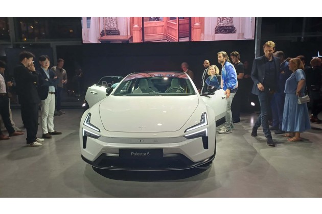 An der Front gibt es annähernd T-förmige "Dual Blade"-Leuchten, die immer noch entfernt an Volvos "Thors Hammer" erinnern. Die Scheinwerfer haben serienmäßig "Pixel-LED-Technologie", das heißt Matrix-LED-Scheinwerfer sind serienmäßig. Die Karosserie ist glatt und puristisch. Als Ersatz für den die nicht vorhandene Heckscheibe gibt es einen kamerabasierten Innenspiegel. Der Polestar 5 verfügt zudem über ein riesiges Glasdach, das über zwei Meter lang und 1,25 m breit ist.