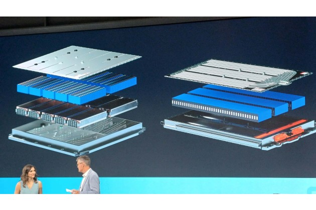 Vorteil: Die bei einem thermischen Durchgehen entstehenden Gase können nach unten abgelassen werden, und damit von den Insassen weg. Die Zellen haben die dafür nötigen Überdruckventile an der Unterseite, die elektrischen Kontakte sind an den Schmalseiten. Das heißt, auch die Stromschienen müssen seitlich im Längsholmen des Batterierahmens untergebracht sein. Module hat die Batterie nicht, es handelt sich um einen Cell-to-Pack-Ansatz.