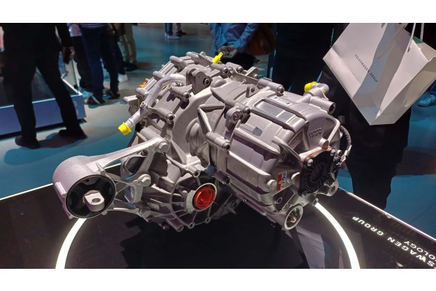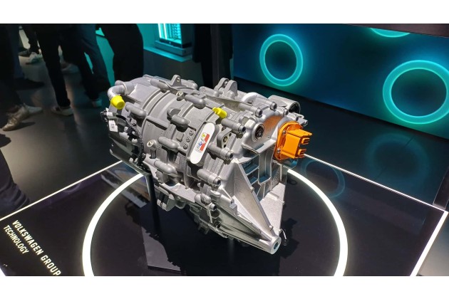 Der eingesetzte Motor trägt den Namen APP290. Die Abkürzung steht für einen Achs-Parallelen Permanentmagnetmotor mit etwa 290 Nm Drehmoment; die Leistung soll bis zu 160 kW betragen. Der Motor selbst ist also ein PSM; er bekommt eine einfache Wassermantel-Kühlung, während der APP550, den es mit 210 und 240 kW gibt, eine aufwendigere Wasser-Öl-Kühlung hat. Diese versorgt auch den Inverter. Letzterer ist hier kein rechteckiger Kasten, der oben auf den Motor gesetzt wird, sondern eher eine Diskusscheibe, die so gut integriert ist, dass sie kaum auffällt.