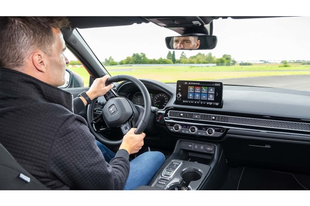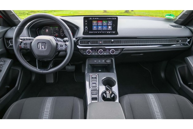 Technisch gesehen treibt in den meisten Situationen ein 184 PS starker Elektromotor mit 315 Nm Drehmoment die Vorderräder an. Der 2,0-Liter-Vierzylinder-Saugbenziner (143 PS) dient dabei hauptsächlich als Stromgenerator. Das Ergebnis: Der Civic fährt im Alltag tatsächlich oft wie ein Elektroauto. Sanft, leise, spontan, mit sattem Antritt - sehr diskret gleitet man los, während der Benziner im Hintergrund unauffällig den Strom liefert.