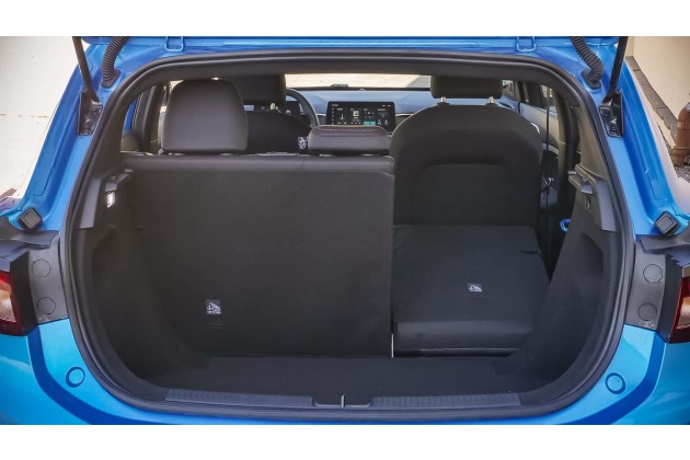 Innen überzeugt das Fahrzeug mit einem ansprechenden Design, das durch Zierleisten und -nähte aufgewertet wird. Zwar ist in den Türen viel Kunststoff verbaut, dieser fühlt sich jedoch weich und angenehm an. Der Kofferraum bietet eine angemessene Größe für die Klasse und ist vollständig mit Stoff ausgekleidet, was einen hochwertigen Eindruck hinterlässt. Auch auf den Rücksitzen sitzt man komfortabel: Hinter dem Fahrersitz war noch ausreichend Beinfreiheit vorhanden.