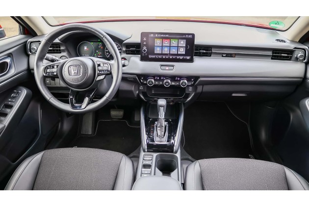 Unter der Haube arbeitet unverändert Hondas e:HEV-Hybridsystem: ein 1,5-Liter-Vierzylinder im Atkinson-Zyklus mit 107 PS, kombiniert mit einem 131 PS starken Elektromotor, der den Hauptteil des Antriebs übernimmt. Zusammen ergibt das 96 kW (131 PS) Systemleistung und 253 Nm Drehmoment. Klingt nicht nach viel, reicht aber für einen urbanen Crossover völlig aus.