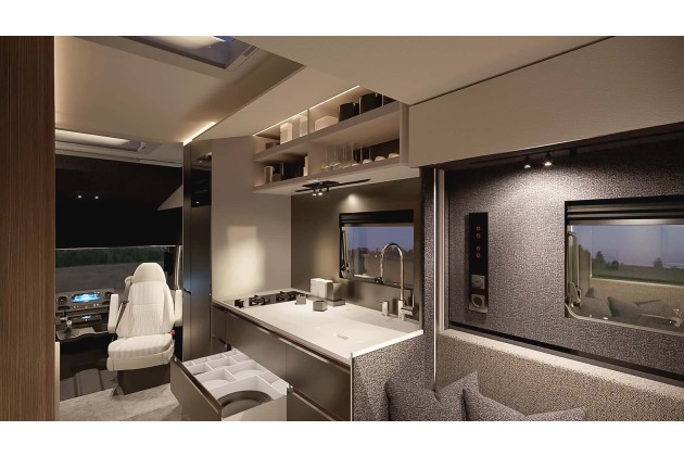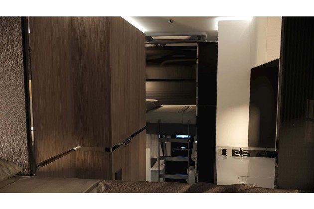 Ein Highlight ist der Stauraum. Der 39 Zentimeter hohe Doppelboden fasst insgesamt 2.780 Liter. Die Heckgarage allein bietet 1.980 Liter, ergänzt von einer mittleren Garage mit 800 Litern. Im Kleiderschrank hat jedes Familienmitglied seine eigene Schublade - eine einfache, aber geniale Idee.