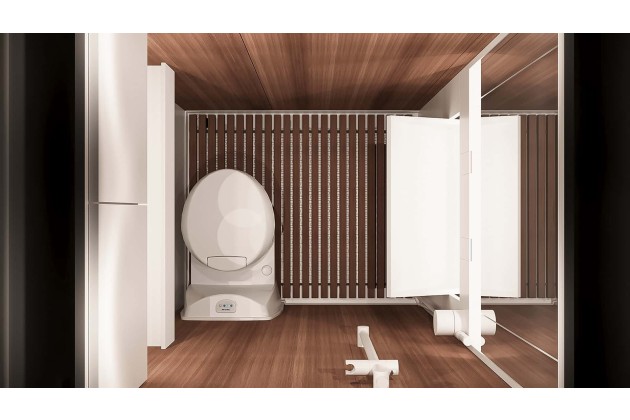 Das Bad wirkt für ein Wohnmobil überraschend großzügig. Ein Waschbecken verschwindet bei Nichtgebrauch, dazu gibt es Dusche und Kassettentoilette. Der Anspruch: sich auch unterwegs fast wie zu Hause zu fühlen. Ein Detail, das im Alltag besonders auf längeren Reisen den Unterschied macht.