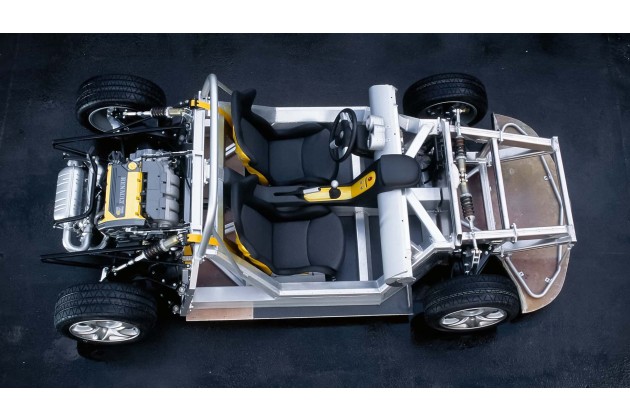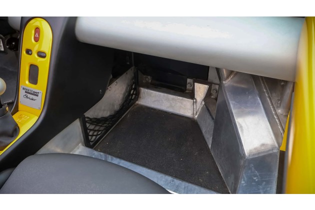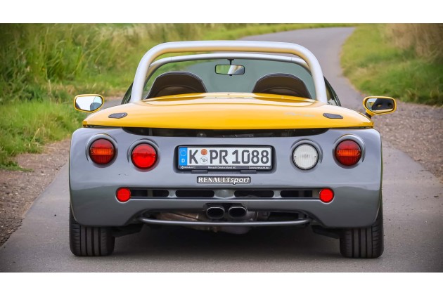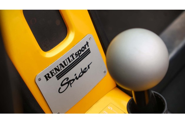 Vornehmlich für den Rennsport entwickelt, ordnet der Renault Sport Spider alles dem Erlebnis Straße unter. Der Fahrzeugboden aus zwei Zentimeter dickem Polypropylen und eine Höhe von 1,25 Meter verschaffen dem Sonntagsauto einen äußerst tiefen Schwerpunkt. Durch den Mittelmotor stimmt die Balance auf einem Radstand von bloß 2,34 Meter punktgenau. Angetrieben wird der Wirbelwind über das Heck.