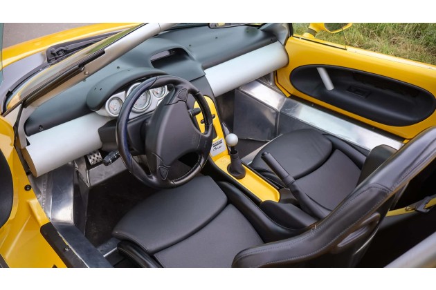 Meine Füße treten jedoch auf blankes Alu. Beim Hineinplumpsen in den Sport Spider muss zudem ein breiter Teil des offenliegenden Gitterrohrrahmens überwunden werden. Das hier ist Motorsporttechnik gepaart mit Massenware - wild!