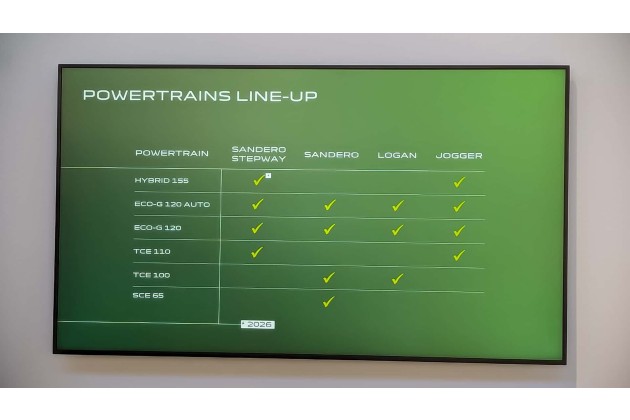 Neu ist auch der Eco-G 120, der erste LPG-Motor bei Dacia mit Automatikgetriebe. Der 1,2-Liter-Turbo-Dreizylinder leistet 120 PS und ist mit einem 6-Gang-Doppelkupplungsgetriebe kombinierbar. Die LPG-Tanks wurden auf 49,6 Liter vergrößert, was die Reichweite erhöht; die Gesamtreichweite beträgt bis zu 1.590 Kilometer. Der überarbeitete TCe 100 für Sandero liefert nun 100 statt 90 PS und ist mit Sechsgang-Schaltgetriebe verfügbar.