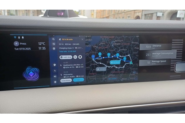 Eine Navigationsroute nach Paris konnte ich jedoch per Sprachbedienung erstellen. Auch passende Ladestationen werden hinzugefügt. Das System zeigt an, wie viele Säulen mit welcher Ladeleistung vorhanden und verfügbar sind und welche Einrichtungen sich in der Nähe befinden. Man kann auch nach Ladekartenanbietern filtern und bestimmen, bei welchem Mindest-Ladestand man bei den einzelnen Stationen und am Ziel ankommen möchte - perfekt.