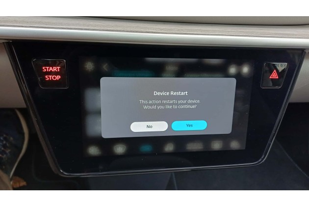 Das Navigationssoftware befindet sich immer noch im Beta-Stadium, wie beim Systemstart zu sehen ist; einmal stieg das System komplett aus und zeigte nur noch einen weißen Bildschirm an. Nach einem Neustart des Systems über einen eigenen Menüpunkt war das behoben.
