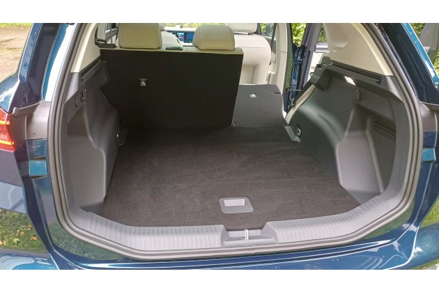 Der Kofferraum fasst 441-1.515 Liter. Das ist etwas weniger als beim VW ID.4 (543-1.575 Liter) oder beim Opel Grandland (550-1.645 Liter). Das Gepäckabteil ist gut nutzbar; die Schwelle am Eingang ist sehr niedrig, die Laderaumabdeckung lässt sich leicht entnehmen. Nur das Umklappen der Rücksitze (im Verhältnis 60:40) geht etwas schwer von der Hand, weil man die entsprechenden Knöpfe sehr tief hineindrücken muss. Schön gelöst ist jedoch die Gurtführung beim Umklappen.