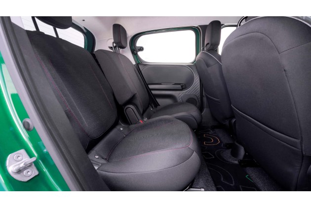 Das Armaturenbrett, zylindrisch und auf den ersten Blick schwebend, schafft ein Gefühl von Offenheit und Kontinuität; die Rücksitze sind längs verschiebbar wie im Originalmodell, und ermöglichen es, zwischen mehr Beinfreiheit oder einem Kofferraum von über 1.000 Litern zu wählen.