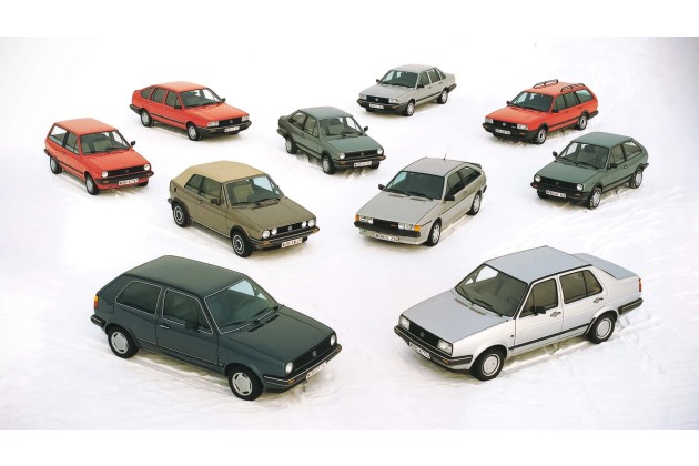Wir müssen unseren Altblech-Fahrbericht mit einer Bildbetrachtung beginnen. Dieses Pressefoto ist aus dem Jahr 1987 und zeigt das gesamte Pkw-Modellprogramm der Marke VW. Wo heute der Konfigurator fast überquillt, geht es damals noch ziemlich überschaubar zu.