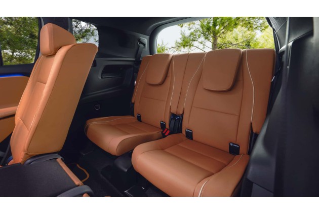 Der wesentliche Unterschied zwischen dem CLA und dem GLB liegt im hinteren Bereich, wo Mercedes eine optionale dritte Reihe mit zwei Einzelsitzen anbietet. Die verschiebbare zweite Reihe ist bei den Siebensitzer-Versionen serienmäßig und bei den Fünfsitzern optional. Wenn sie nicht benötigt werden, können die hintersten Sitze flach in den Ladeboden geklappt werden, um die Ladekapazität zu erhöhen.