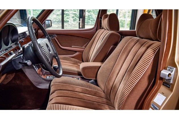 Serienmäßig an Bord des 450 SEL 6.9 sind Annehmlichkeiten wie Klimaanlage, wärmedämmendes Glas, heizbare Heckscheibe, Zentralverriegelung, Tempomat, elektrische Fensterheber, Scheinwerfer-Reinigungsanlage, Velourspolster und auch Automatik-Sicherheitsgurte sowohl an den Vordersitzen als auch im Fond. Jedoch keine Leichtmetallfelgen. Sie zählen mit 1.554 DM zu den Ausstattungsoptionen, wie auch das elektrische Schiebedach (987,90 DM) und das hochexklusive Autotelefon Becker AT 160 S (13.542 DM). Selbst der rechte Außenspiegel kostet damals 94,35 Mark.