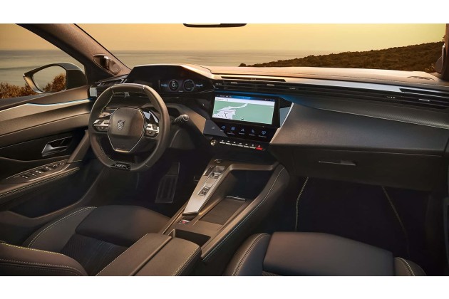 Der Innenraum folgt dem bekannten Peugeot-i-Cockpit-Layout mit kleinem Lenkrad und hoch positioniertem digitalem Kombiinstrument. Optional wird dieses mit 3D-Darstellung angeboten. Ergänzt wird es durch einen zentralen 10-Zoll-Touchscreen.