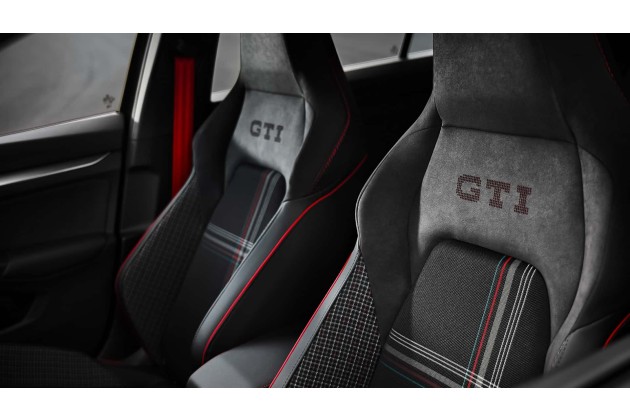 Im Innenraum hat man wirklich sämtliche Register gezogen, damit jeder sofort erkennt, dass hier jemand runden Geburtstag feiert. Die gut zupackenden und langstreckentauglichen Sitze haben Karomuster in allen erdenklichen Farben und Formen, wir entdecken Rot an Sitzgurten und Pedalerie (!), zudem wurden diverse Zierteile in einen dunklen Alu-Ton getaucht und natürlich dürfen auch hier allerhand "GTI 50"-Logos nicht fehlen. Selbst am Fahrzeugschlüssel hat man noch eines untergebracht.