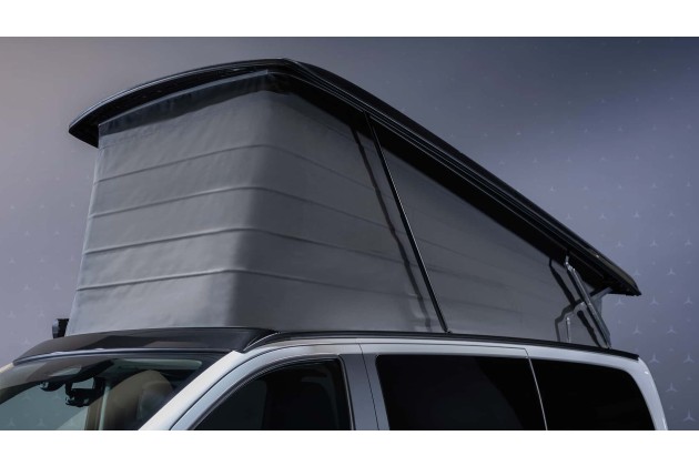 Auch außen hat Mercedes den Alltag im Blick. Die Markise ist neu konstruiert, lässt sich leichter abnehmen, und die Kurbel steckt endlich dort, wo man sie später sucht - in der Halterung. Magnetische Verdunkelungen fürs Cockpit ersetzen das Gefummel mit Saugnäpfen. Keine Showeffekte, aber spürbare Fortschritte für Leute, die ihren Bus wirklich nutzen.