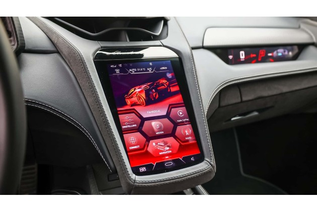 Das Cockpit wird von drei Displays dominiert. Das digitale Kombiinstrument ist brillant, vielfach konfigurierbar, zeigt in jedem Modus eine andere, gestochen scharfe Optik und liefert alle erdenklichen Informationen. Ein nettes Gimmick ist das schmale Beifahrerdisplay. Ob der Mitfahrer bei diesem Fahrerlebnis wirklich Unterhaltung braucht, sei dahingestellt. Das hochkant stehende zentrale Infotainment-Display überzeugt weniger. Die Menüführung ist verschachtelt und unübersichtlich. Immerhin laufen Apple CarPlay und Android Auto kabellos und stabil.