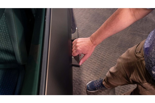 Während der ID. Polo traditionelle Bügelgriffe besitzt, setzt Cupra erstaunlicherweise auf bündige Türgriffe, obwohl diese künftig in China verboten sind und auch die EU über neue Regularien nachdenkt. Dazu sagte uns ein Sprecher, erstens werde der Raval nicht in China angeboten und zweitens gebe es eine mechanische Fallback-Lösung: Man kann links auf den eingefahrenen Türgriff drücken, sodass dieser mechanisch ausfährt.