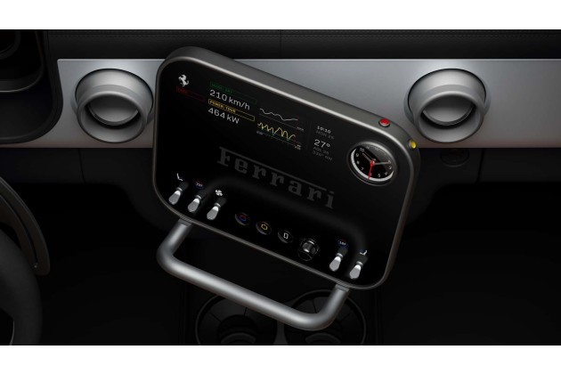 Offenbar handelt es sich bei dem neuen Elektro-Ferrari nicht um einen Zweisitzer, denn es gibt auch ein Display für die Fondpassagiere.