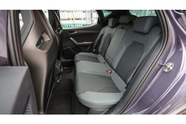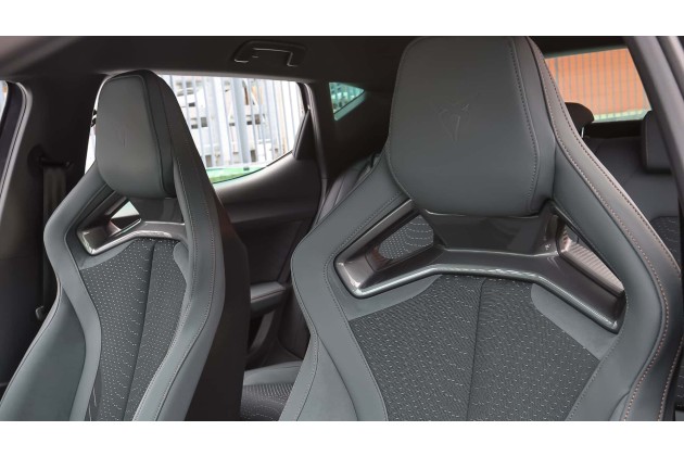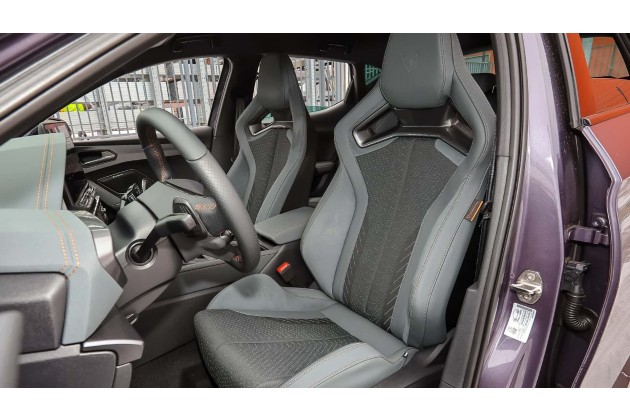 Besonderes Augenmerk verdienen die "Cupra CUP" genannten Supersport-Schalensitze, die in der VZ Extreme-Ausstattung serienmäßig verbaut sind. Sie sehen mit ihrem Materialmix aus upgecyceltem Seaqual Yarn und Dinamica mit 73 Prozent recyceltem Polyester stylisch aus und wirken extrem sportlich. Die Polsterung ist straff, die Seitenwangen eng geschnitten.
