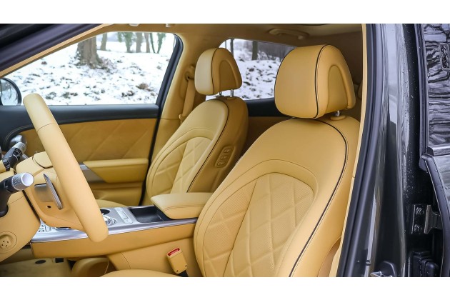 Die hellen Ausstattungen sind wohl nur zu empfehlen, wenn Sie nach jeder Fahrt putzen oder mit Pantoffeln und Schutzanzug direkt aus dem Wohnzimmer heraus im Auto Platz nehmen. Insgesamt sitzt es sich im Genesis GV60 aber sehr angenehm. Etliche elektronisch verstellbare Einstellungsmöglichkeiten sorgen für Sitzkomfort, Sitzheizung und -belüftung für angenehme Klimatisierung.