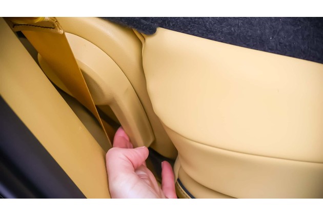 Dieses Farbkonzept aus Gold Coast Yellow und Pine Grove Green bleibt sowieso Geschmackssache. Die helle Innenausstattung ist jedoch arg schmutzanfällig. So waren Verfärbungen an Sitzflanken, Armelehne und Türverkleidungen zu sehen, die sich wohl über die Monate von den Textilien der Testerkollegen festgesetzt hatten.