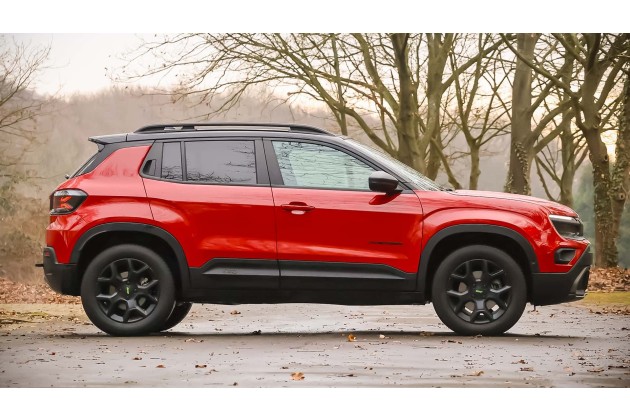 Wenn wir genau hinsehen, erkennen wir in der Seitenlinie des Jeep Avenger 4xe schon deutliche Muster des Citroën C3. Das klingt ein wenig skurril, da wir hier nicht von einem Budget-Kleinwagen sprechen, sondern von einem kleinen Geländewagen. Aber machen wir uns nichts vor, Jeep hat hier an vielen Ecken gute Arbeit geleistet, um die Plattform-Verwandtschaft zu vertuschen.