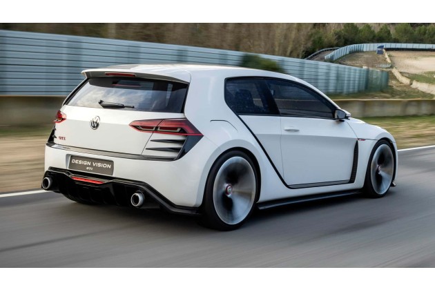 Aber nicht genug der krassen GTI-Studien: 2013 präsentierte Volkswagen mit dem Design Vision GTI eine motorsportorientierte Studie auf Basis des Golf VII GTI. Das Konzeptfahrzeug leistete 370 kW (503 PS). Auffällig waren die stark ausgeformten C-Säulen und Seitenschweller, die das Designteam als eigenständige Karosserieelemente nach außen zog. Dadurch entstand Raum für deutlich verbreiterte Spurweiten und 20-Zoll-Räder.