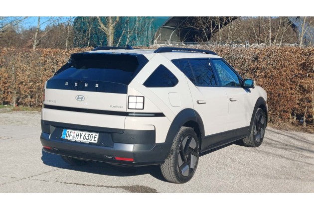 Im Alltag dürften die 150 kW ausreichen; es gelang problemlos, in den Autobahnverkehr einzufädeln, aber sportliche Ambitionen schminkt man sich vor dem Einsteigen besser ab. Auch deswegen, weil der Wagen in der Kurve oder beim simulierten Pylonenwedeln ein deutliches Wanken zeigt - hier sind reine Elektroautos mit ihrer schweren Batterie im Boden deutlich im Vorteil. Trotzdem ist der Nexo mit einem Leergewicht von rund zwei Tonnen nicht viel leichter als ein Elektroauto: Der Ioniq 5 wiegt in der Basisversion mit 63-kWh-Akku auch nicht mehr.