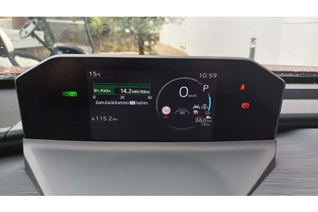 Relevanter ist allerdings der Autobahnverbrauch, denn lange Strecken werden typischerweise nicht auf kurvigen Landstraßen gefahren. Diesen gibt Toyota mit 18,3 kWh an; damit liegt er ein gutes Drittel über dem Normverbrauch. Entsprechend würde auch die Reichweite auf der Autobahn vom Normwert von 607 km auf etwa 390 km sinken.