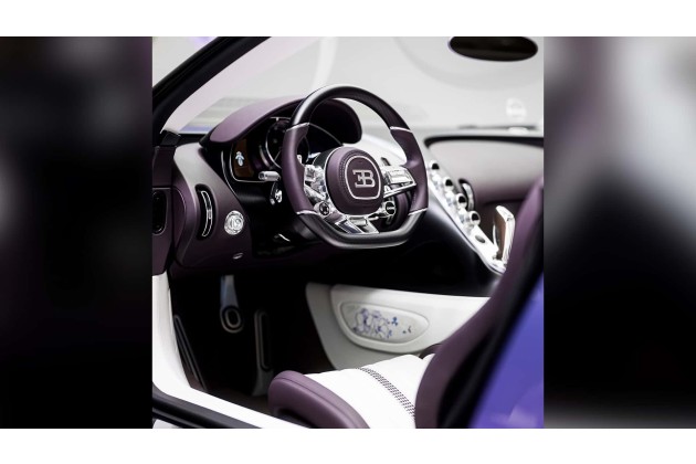 Wer im Cockpit Platz nimmt, taucht in eine Welt aus den Lederfarben "Blanc" und "Minuit" ein. Das Blumenthema wird hier durch aufwendige Stickereien fortgeführt. Auf den Kopfstützen finden sich spiegelbildliche Motive, die aus Tausenden von Fäden bestehen. Bugatti betont, dass hierbei spezielle Mehrschicht-Techniken zum Einsatz kamen, um die feinen Farbabstufungen der Natur realitätsgetreu abzubilden.