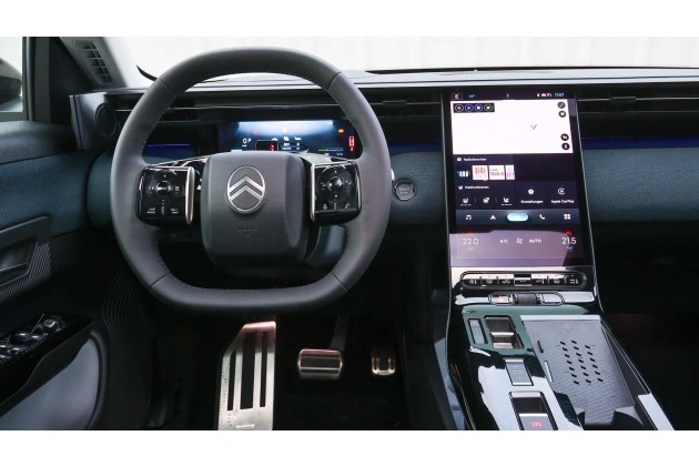 Die Seitenansicht profitiert vom langen Radstand von 2,79 Metern, die Proportionen passen. Das Dach fällt sanft ab, ohne die Kopffreiheit im Fond zu ruinieren, die Radhäuser sind kräftig ausgestellt. Am Heck wird es dann richtig eigenwillig: Die Citroën Light Wings stehen wie kleine Tragflächen aus der Karosserie und kombinieren Designspielerei mit Aerodynamik. Das sieht interessant aus, aber nicht zwingend elegant. Langweilig ist es jedenfalls nicht.