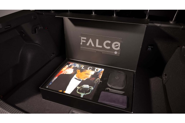 Die Golf Falco Edition tritt als eigenständiges Modell auf. Serienmäßig an Bord sind LED-Matrix-Scheinwerfer, 18-Zoll-Leichtmetallräder und ein Soundsystem von Harman Kardon. Außen setzen schwarze Akzente sowie spezielle Dekore an B- und C-Säule optische Highlights. Dort finden sich Texte, Falcos Unterschrift und der FALCO-Schriftzug. Im Innenraum trägt ein Badge den Namen der Edition und macht den Sonderstatus sichtbar.