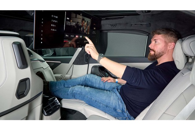 Für die Passagiere im Fond bleibt der 31,3 Zoll große Theatre Screen das Highlight, der nun ebenfalls ein Upgrade auf 8K-Auflösung und erweiterte Streaming-Optionen erhält. Außerdem können jetzt alle Funktionen auch per Touch gesteuert werden, die Smartphone-ähnlichen Bedien-Pods in den Türen sind dafür also nicht mehr zwingend notwendig.