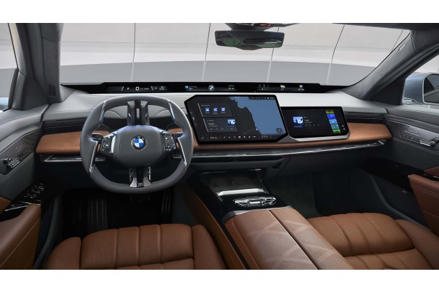 Im Interieur vollzieht BMW den radikalsten Wandel. Der bisherige G70 war bereits digital, doch die Modellpflege führt das "BMW Panoramic iDrive" ein, das direkt aus der Neuen Klasse stammt. Kernstück ist das "BMW Panoramic Vision" - eine Projektion von Inhalten über die gesamte untere Breite der Windschutzscheibe. Ergänzt wird dies durch ein 3D Head-Up Display, das fahrrelevante Informationen direkt in die Sichtachse projiziert.