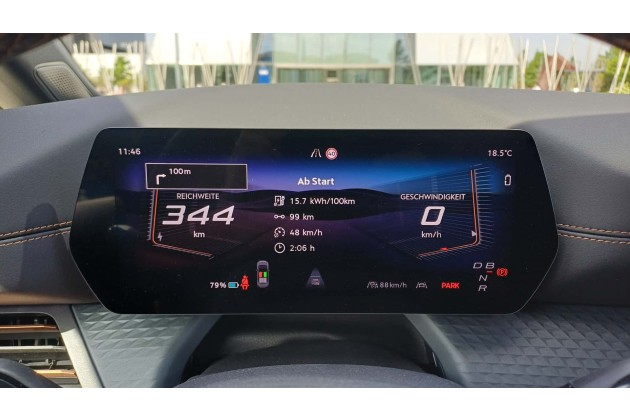 Nach WLTP-Norm braucht der Born VZ 14,1 bis 16,2 kWh/100 km. Die am Bordcomputer abgelesenen Verbräuche ab Start lagen allesamt zwischen 15,4 und 18,5 kWh/100 km. Am Ende der Testfahrt, bei der wir nicht auf Sparsamkeit achteten, meldete das Display 15,7 kWh. Wegen der spanischen Tempolimits rund um Madrid fuhren wir allerdings nie schneller als 100 km/h, und ein Teil der Route führte durch die Stadt.