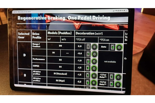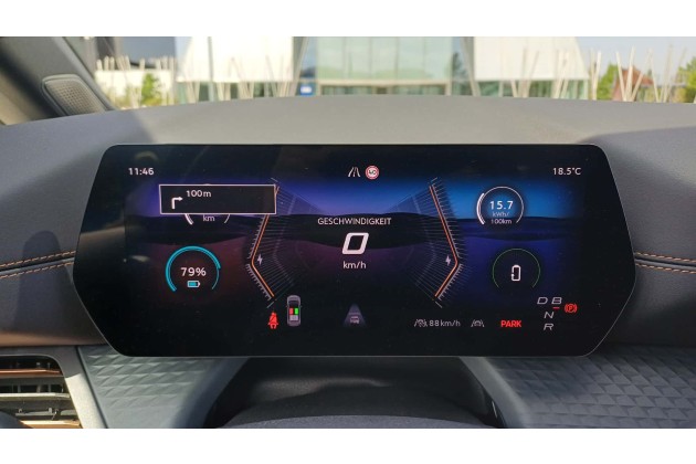 Allerdings verwirrte mich die "2", die daraufhin im Instrumentendisplay erscheint, und die für die Rekuperationsstärke steht. Warum nicht "3", also die stärkste Bremswirkung? Über die Lenkradwippen kann man doch auch Stufen von 0 bis 3 aktivieren. Die stärkste Rekuperation mit einer Verzögerung von -2,2 m/s2 erhält man tatsächlich im B-Modus in Stufe "2", erklärte mir später die Produktmanagerin. Wenn man die "2" über die Lenkradwippen aktiviert, ist die Verzögerung schwächer. Wie schwach, hängt vom Fahrmodus ab.